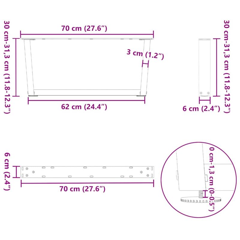 Тези крака за масичка за кафе съчетават форма и функция. Това е идеален избор за персонализиране на вашата масичка за кафе. Издръжлив материал: Този крак за масичка за кафе е изработен от прахово боядисана стомана, което го прави здрав и дълготраен.Практичен дизайн: Този крак за масичка за кафе включва регулируеми нивелири, осигуряващи стабилност дори на неравни подове и минимизиращи драскотините по пода. Освен това, скобата е с предварително пробити отвори и включени в доставката винтове, които могат да се използват за закрепване на крака към плота на масата (не са включени), което улеснява сглобяването.Модерна естетика: Кракът на масата предлага елегантен и съвременен вид. Изчистените му линии и геометричен дизайн подобряват цялостния вид на мебелите. Полезно е да знаете:Доставката съдържа само крака за маса, плотът на масата не е включен.