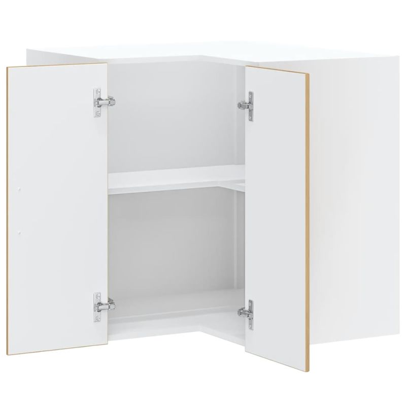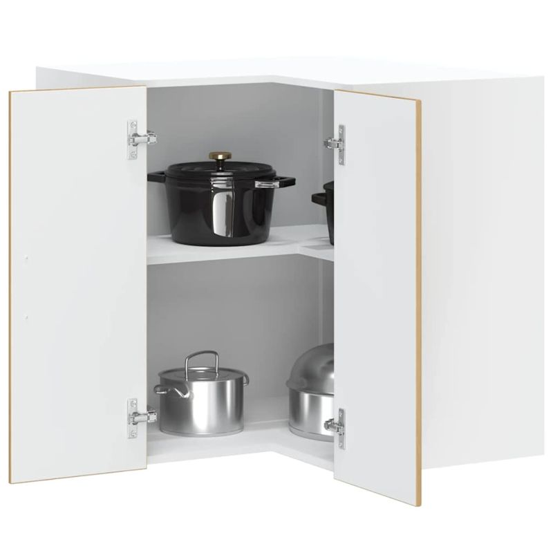 Този кухненски стенен ъглов шкаф е предназначен да оптимизира кухненското пространство и да украси дома ви! Стабилен и издръжлив материал: Инженерната дървесина е издръжлив и стабилен материал с гладка повърхност, която е устойчива на влага, изкривяване и разцепване, което я прави надежден избор за различни проекти.Голямо пространство за съхранение: Ъгловият кухненски шкаф предлага достатъчно място за съхранение на купи, чинии, тенджери и други кухненски уреди.Конструкция за монтиране на стена: Кухненският шкаф може да се монтира на стената, за да се добави допълнително място за съхранение. По този начин можете да увеличите максимално пространството и да запазите чистотата на помещението.Практични врати: Вратата помага за поддържането на чисто и организирано пространство, като скрива кухненските уреди и разхвърляните вещи зад тях.Лесна поддръжка: Благодарение на гладката си повърхност този шкаф се почиства лесно с влажна кърпа и изисква по-малко поддръжка. Добре е да се знае:Винт(ове) и щепсел(и) за вътрешността на стената не са включени. Търсете и използвайте винт(ове) и дюбел(и), подходящи за вашите стени. Ако не сте сигурни, потърсете професионална помощ. Прочетете и следвайте внимателно всяка стъпка от инструкциите.