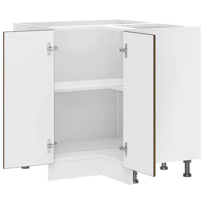 Този кухненски ъглов шкаф оптимизира кухненското пространство, като осигурява достатъчно място за съхранение на личните ви вещи! Стабилен и издръжлив материал: Инженерната дървесина е издръжлив и стабилен материал с гладка повърхност, която е устойчива на влага, изкривяване и разцепване, което я прави надежден избор за различни проекти.Голямо пространство за съхранение: Ъгловият шкаф предлага достатъчно място за съхранение на купи, чинии, тенджери и други кухненски уреди.Практични врати: Вратата помага за поддържането на чисто и организирано пространство, като скрива кухненските уреди и разхвърляните вещи зад тях.Регулируеми крачета: Крачетата на този ъглов модул могат да се регулират по височина, за да отговарят на разположението на кухнята.Лесна поддръжка: Благодарение на гладката си повърхност този кухненски ъглов модул се почиства лесно с влажна кърпа и изисква по-малко поддръжка. Внимание:За да предотвратите преобръщане, този продукт трябва да се използва с предоставеното устройство за закрепване на стена. Добре е да се знае:Винт(ове) и щепсел(и) за вътрешността на стената не са включени. Търсете и използвайте винт(ове) и дюбел(и), подходящи за вашите стени. Ако не сте сигурни, потърсете професионална помощ. Прочетете и следвайте внимателно всяка стъпка от инструкциите.