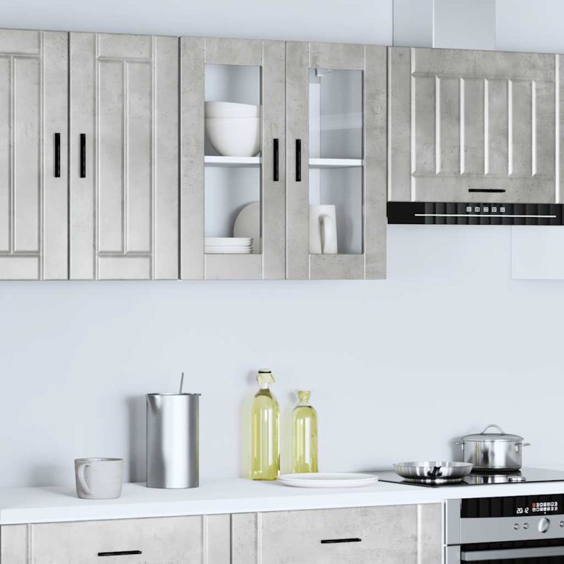 Кухненски стенен шкаф със стъклена врата Porto бетонно сив