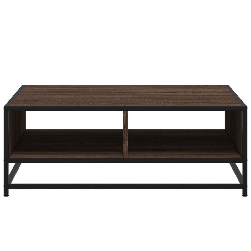 Кафе маса, кафяв дъб, 80x80x30 см, инженерно дърво и метал