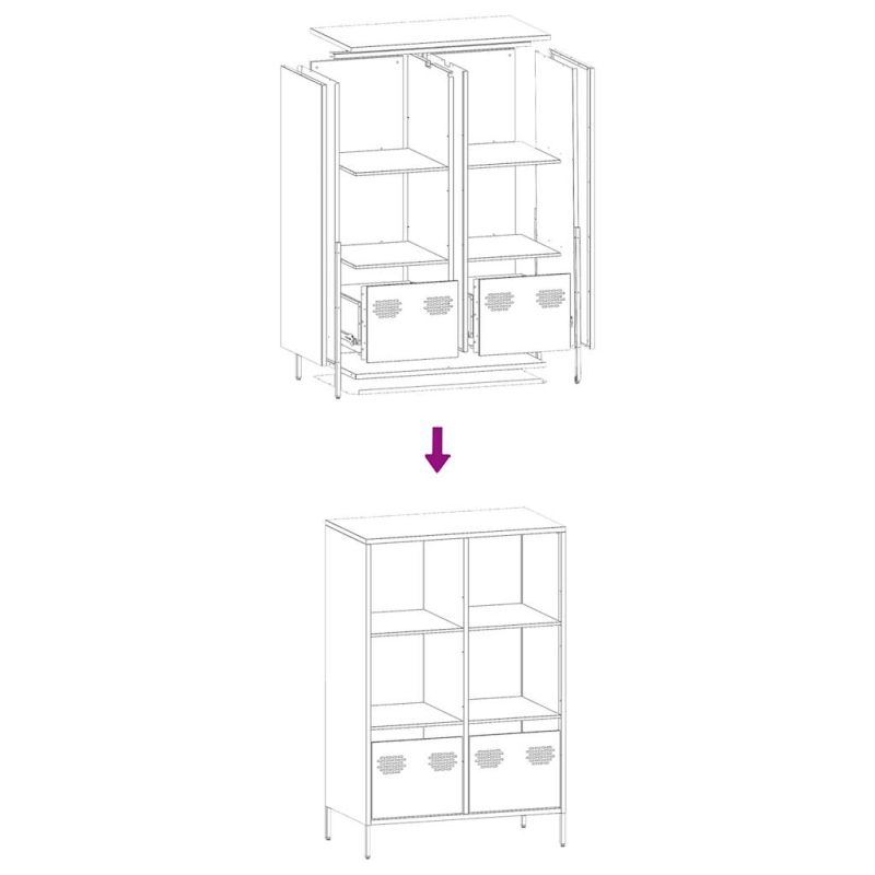 Този класически висок шкаф е предназначен да бъде декоративно и практично допълнение към вашия дом или офис. Здрава и стабилна структура: Студеновалцуваната стомана има по-гладка повърхност, по-висока якост и прецизност. Металните крачета придават спокоен стил на вашия интериор, като същевременно осигуряват стабилност.Голямо пространство за съхранение: Шкафът с чекмеджета предлага достатъчно място за съхранение, за да държите добре подредени и леснодостъпни различните си ежедневни принадлежности.Лесна за поддръжка: Благодарение на гладката си повърхност, шкафът се почиства лесно с влажна кърпа и изисква по-малко поддръжка.Широки приложения: В зависимост от нуждите ви, този висок шкаф може да се използва като шкаф за книги или бюфет витрина във вашата всекидневна, спалня или офис. Внимание:За да предотвратите преобръщане, този продукт трябва да се използва с предоставеното устройство за закрепване на стена.