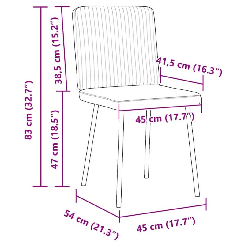 Тези трапезни столове съчетават семпъл стил и комфорт с елегантния си дизайн, което ще ги превърне в акцента на вашето жилищно пространство. Меко кадифе: Този стол е украсен с кадифена тъкан, която е изключително мека и удобна и предлага приятно усещане върху кожата.Здрава и стабилна рамка: Столът за хранене се поддържа от метал и дърво, което осигурява допълнителна издръжливост и стабилност.Удобно седене: Седалката и облегалката на седалката за хранене са изпълнени с плътна пяна, за да ви осигурят комфорт.Широки приложения: Столът може да се използва в трапезарията, хола, стаята за гости и т.н. според нуждите ви.