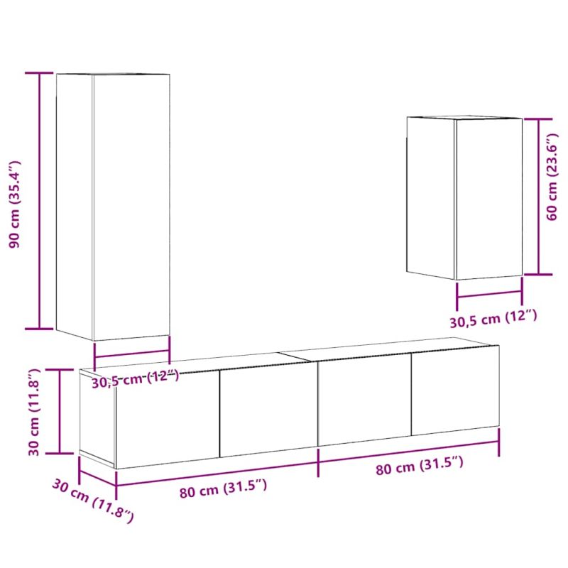 Комплект ТВ шкафове за стенен монтаж 4 части, инженерно дърво