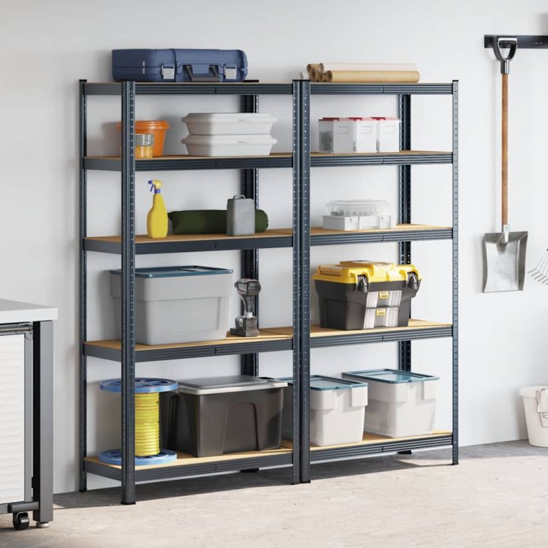 Начало Бизнес и промишленост Промишлено съхранение Индустриални стелажи Стелажи с 5 рафта, 2 бр, антрацит, стомана и инженерно дърво