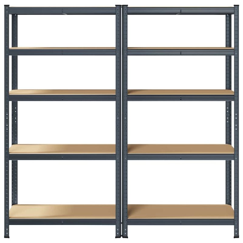 Стелажи с 5 рафта, 2 бр, антрацит, стомана и инженерно дърво
