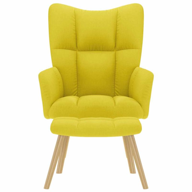 Релаксиращ стол с табуретка, светложълто, текстил