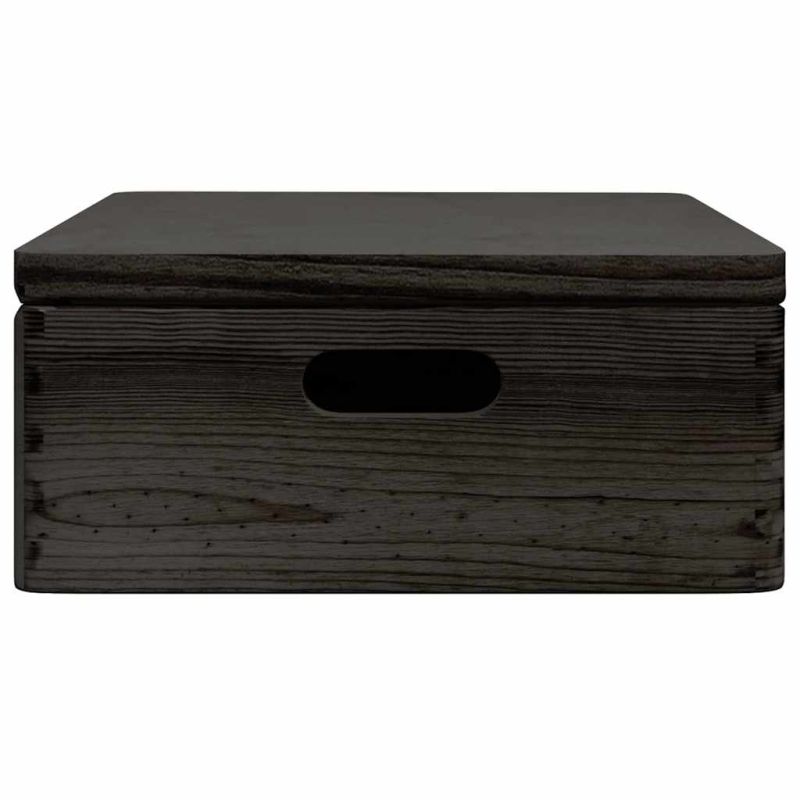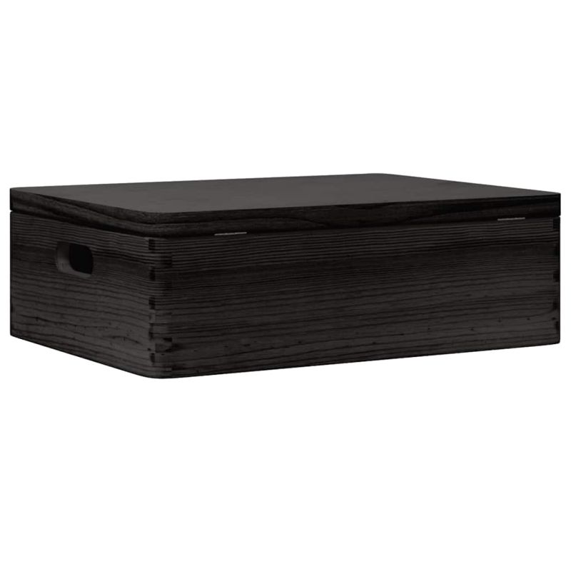 Дървена кутия с капак и дръжки Черно масивна дървесина бор