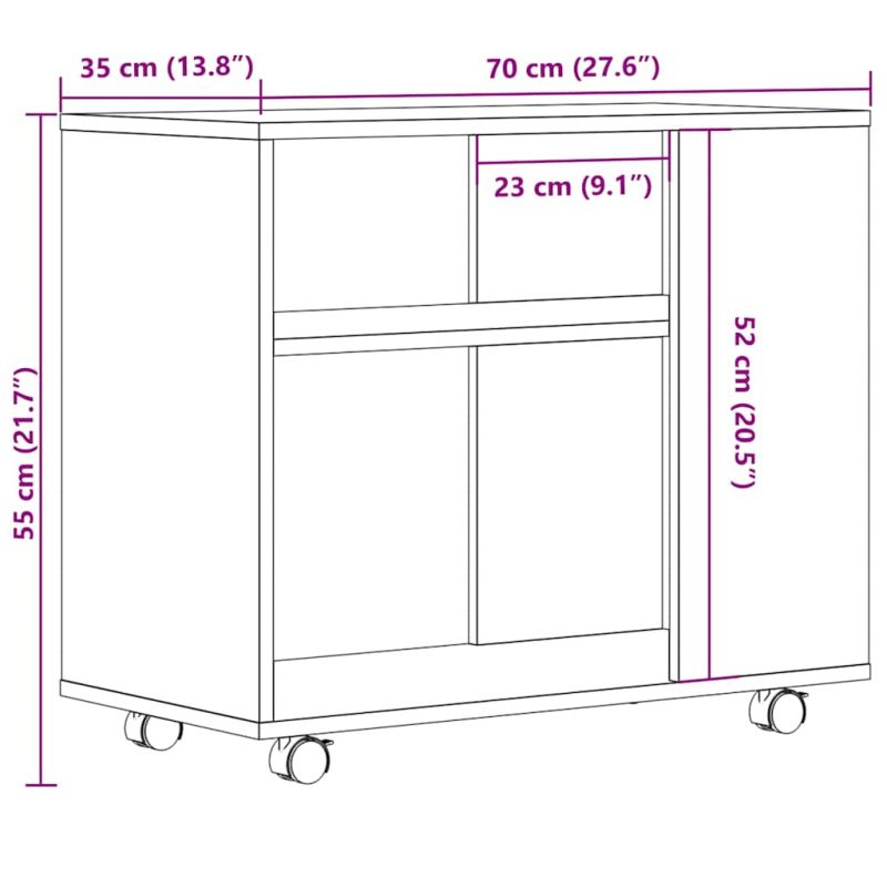 Тази странична маса е проектирана да бъде централната точка на вашата стая с модерен, но практичен дизайн. Стабилен и издръжлив материал: Инженерната дървесина е издръжлив и стабилен материал с гладка повърхност, която е устойчива на влага, изкривяване и разцепване, което я прави надежден избор за различни проекти.Здрав плот: Стабилният плот на крайната масичка е идеален за поставяне на снимки в рамка, саксийни растения и други декоративни предмети.Достатъчно място за съхранение: Страничната масичка с отворен дизайн има два рафта и предлага достатъчно място за съхранение, за да поддържате най-важните си вещи добре организирани и достъпни.Лесна за преместване: Тази странична маса с включените четири въртящи се колела може лесно да се премести на желаното място. Двете колела са с възможност за заключване, което държи шкафа в позиция и добавя стабилност.Лесна за поддръжка: Благодарение на гладката си повърхност, страничната маса се почиства лесно с кърпа и изисква по-малко поддръжка.