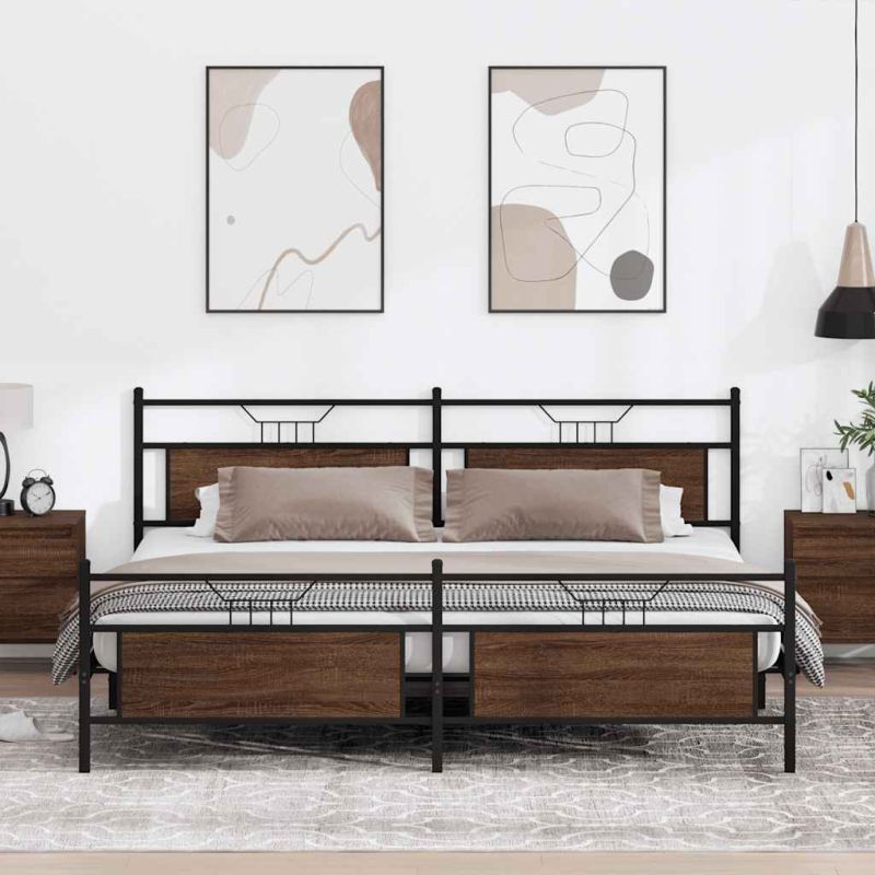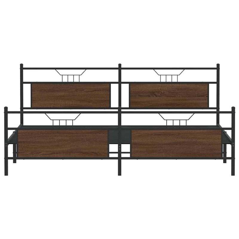 Метална рамка за легло, без матрак, кафяв дъб, 193x201 см