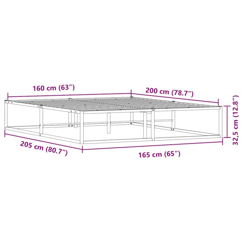 Създайте елегантна и класическа визия във вашата спалня с тази метална рамка за легло! Стабилна и дълготрайна рамка: Прахово боядисаната метална рамка е здрава, стабилна, издръжлива и устойчива на корозия и сурово време, осигурявайки дълготрайно използване.Решетъчна основа за оптимална опора: Рамката на леглото е оборудвана с решетъчна основа за опора и дишане на вашия матрак.Допълнително място за съхранение: За удобство леглото има допълнително пространство отдолу, за да държи кутиите ви за съхранение далеч от погледа. Добре е да се знае:Към това легло не е включен матрак. Ние предлагаме разнообразна селекция от матраци. Можете да проверите нашия магазин за подходящ матрак.