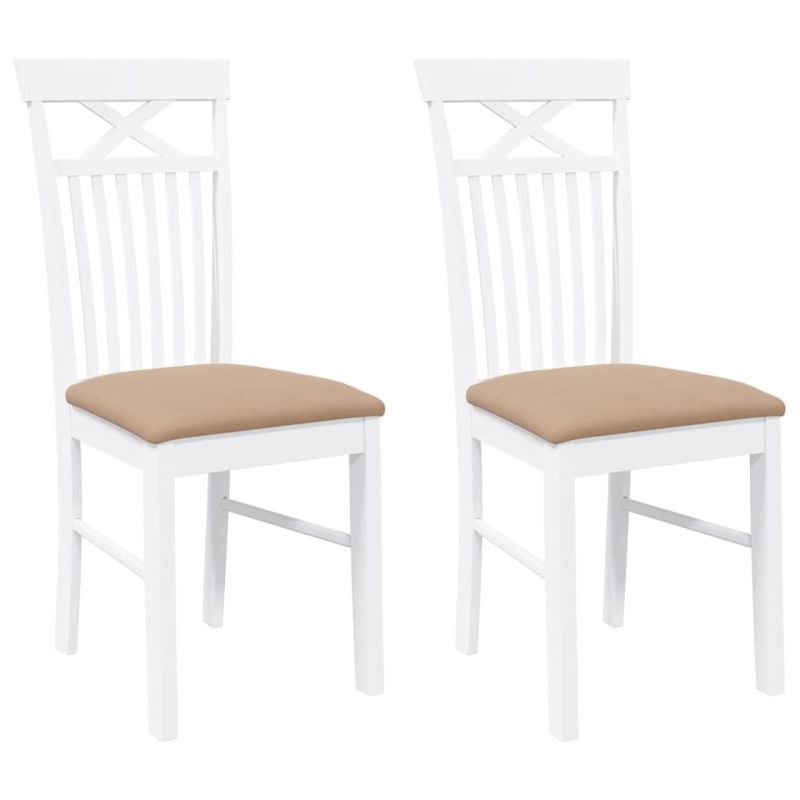 Трапезни столове с възглавници 2 бр Бяла масивна дървесина гума