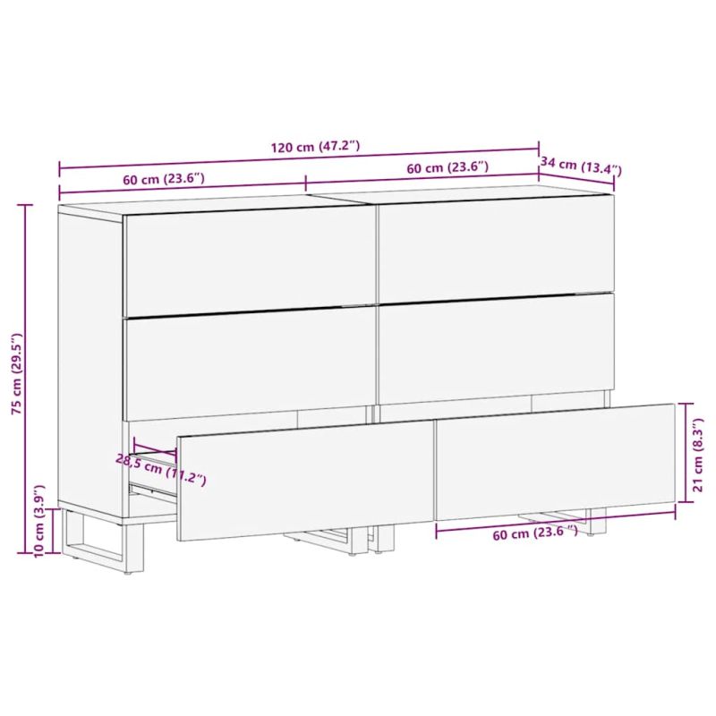 Тези странични шкафове са едновременно декоративни и практични за съхранение, което ги прави идеално допълнение към дома ви. Здрав и стабилен материал: Масивното мангово дърво, здрава тропическа твърда дървесина, е силно предпочитано за производството на мебели поради изключителната си издръжливост и здравина. Красивите ѝ дървесни шарки правят всяка мебел малко по-различна от следващите.Метални крачета: Този шкаф се поддържа от здрави метални крачета, за да се гарантира стабилност, безопасност и устойчивост.Голямо пространство за съхранение: Този шкаф осигурява достатъчно място за съхранение, за да държите ежедневните си вещи добре организирани и на една ръка разстояние. Внимание:За да предотвратите преобръщане, този продукт трябва да се използва с предоставеното устройство за закрепване на стена. Добре е да се знае:Всеки артикул е уникален с вариации в цветове и зърна. Доставката е на случаен принцип, което гарантира ексклузивността и индивидуалността на вашия продукт.