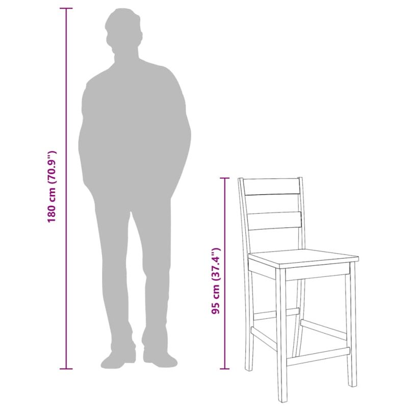 Тези бар табуретки с модерен дизайн са предназначени да бъдат практично допълнение към вашето външно и вътрешно жилищно пространство. Здрави и стабилни материали: Масивното каучуково дърво е красив естествен материал. Каучуковата дървесина има плътна структура и е устойчива на удари и издръжлива.Удобно седене: Бар столът е проектиран с поддържаща облегалка и интегрирана табуретка за крака, за да осигури максимален комфорт при продължително седене.Здрава рамка: Дървената рамка на тези бар столове за закуска осигурява здравина и стабилност.