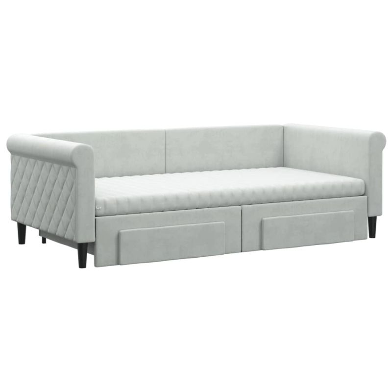 Канапе с изтеглящо легло и чекмеджета светлосив 90x190см кадифе