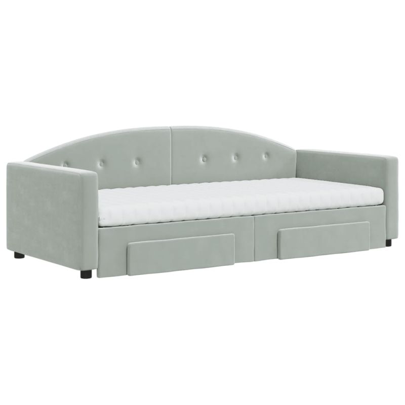 Канапе с изтеглящо легло и чекмеджета светлосиво 90x190 см плат