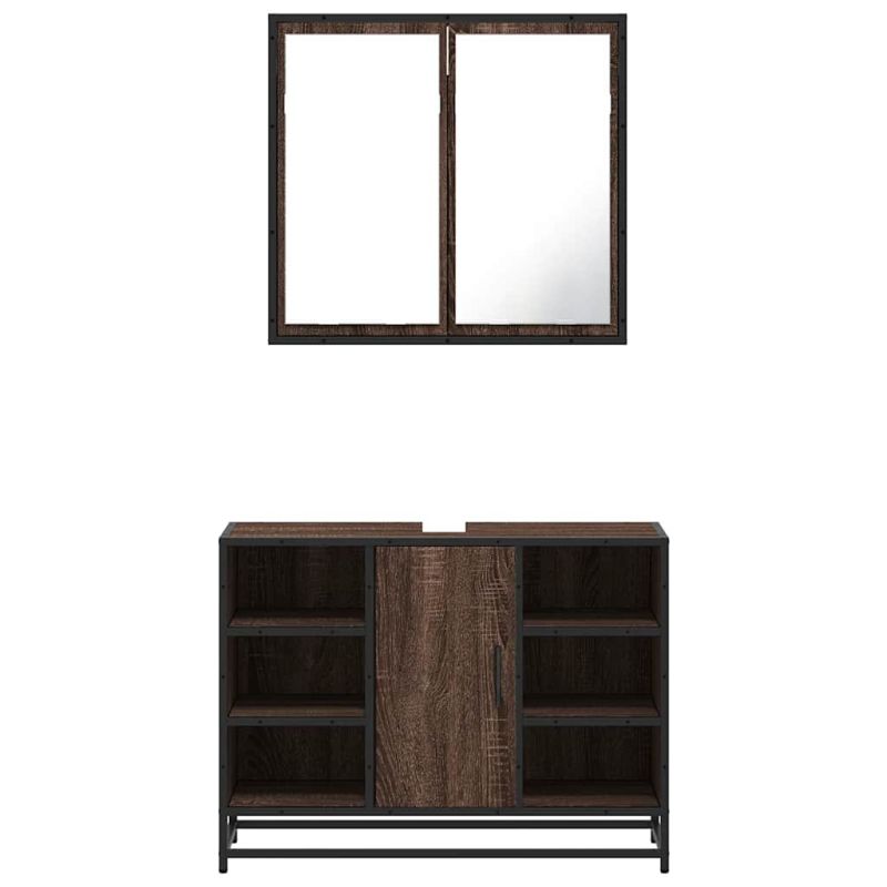 Комплект мебели за баня от 2 части, кафяв дъб, инженерно дърво