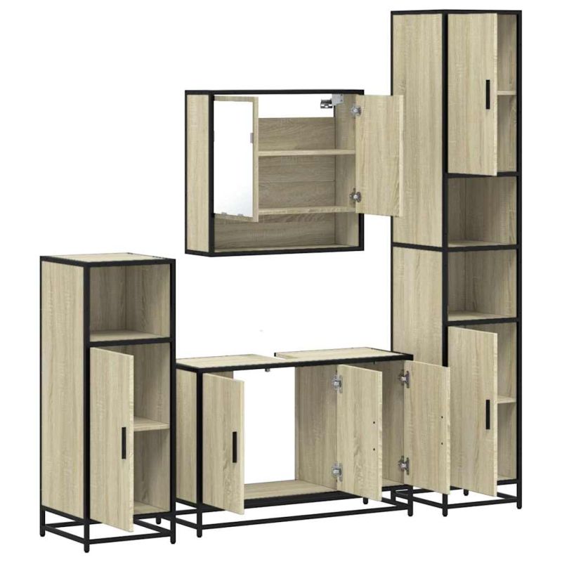 Комплект шкафове за баня от 4 части дъб сонома инженерно дърво