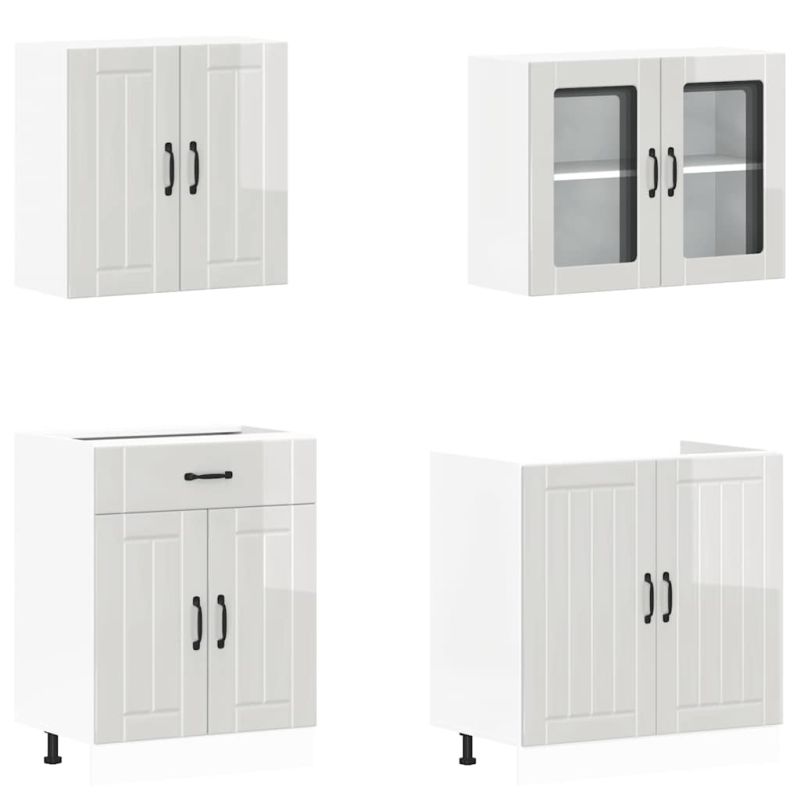 Комплект кухненски шкафове от 4 части "Lucca", бяло гланцово инженерно дърво