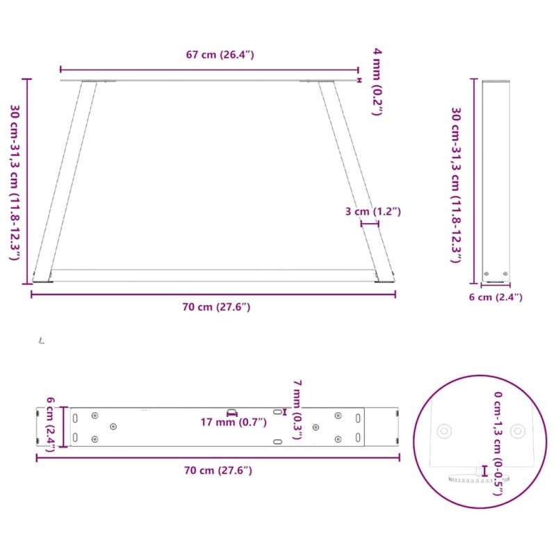 Тези крака за масичка за кафе съчетават форма и функция. Това е идеален избор за персонализиране на вашата масичка за кафе. Издръжлив материал: Този крак за масичка за кафе е изработен от прахово боядисана стомана, което го прави здрав и дълготраен.Практичен дизайн: Този крак за масичка за кафе включва регулируеми нивелири, осигуряващи стабилност дори на неравни подове и минимизиращи драскотините по пода. Освен това, скобата е с предварително пробити отвори и включени в доставката винтове, които могат да се използват за закрепване на крака към плота на масата (не са включени), което улеснява сглобяването.Модерна естетика: Кракът на масата предлага елегантен и съвременен вид. Изчистените му линии и геометричен дизайн подобряват цялостния вид на мебелите. Полезно е да знаете:Доставката съдържа само крака за маса, плотът на масата не е включен.