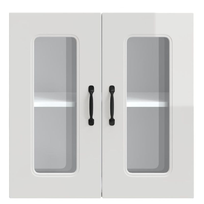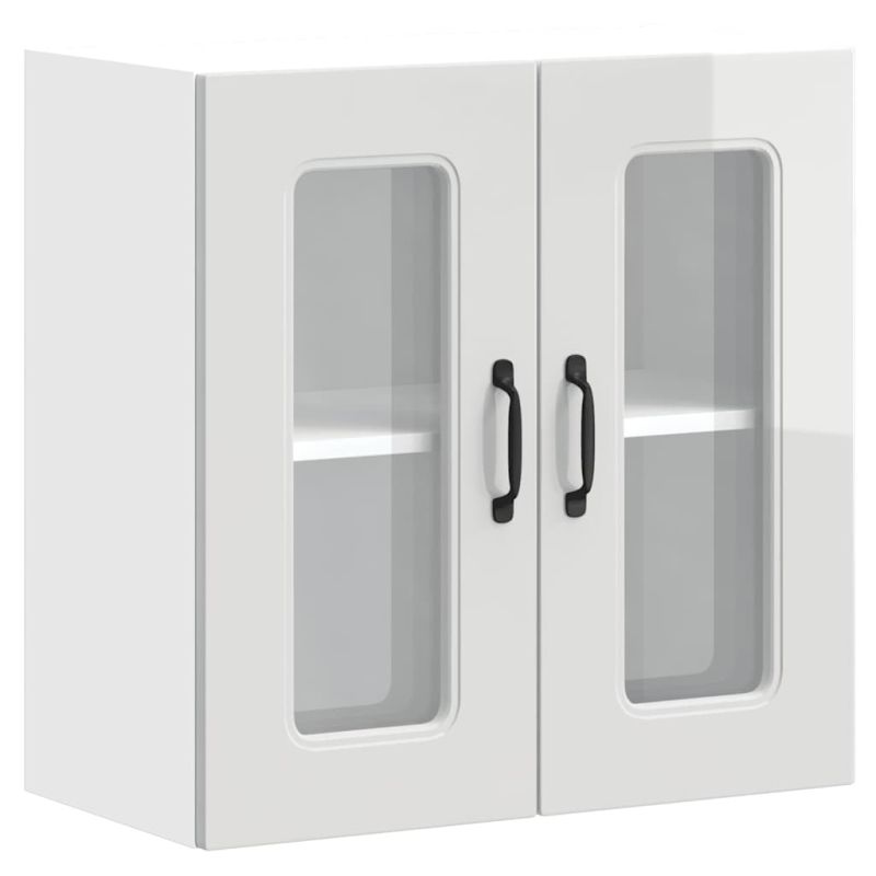Кухненски стенен шкаф със стъклена врата "Kalmar" с висок гланц, бяло инженерно дърво