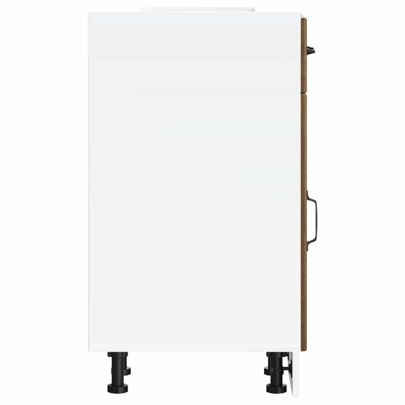Този кухненски шкаф оптимизира пространството в кухнята ви, като осигурява достатъчно място за съхранение на личните ви вещи! Стабилен и издръжлив материал: Инженерната дървесина е издръжлив и стабилен материал с гладка повърхност, която е устойчива на влага, изкривяване и разцепване, което я прави надежден избор за различни проекти.Голямо пространство за съхранение: Шкафът за мивка предлага достатъчно място за съхранение на чинии, чинии, тенджери и други кухненски уреди.Практични врати: Вратата помага за поддържането на чисто и организирано пространство, като скрива кухненските уреди и разхвърляните вещи зад тях.Регулируеми крачета: Крачетата на този шкаф могат да се регулират по височина, за да отговарят на разположението на кухнята ви.Лесна поддръжка: Благодарение на гладката си повърхност този кухненски шкаф се почиства лесно с влажна кърпа и изисква по-малко поддръжка. Внимание:За да предотвратите преобръщане, този продукт трябва да се използва с предоставеното устройство за закрепване на стена. Добре е да се знае:Винт(ове) и щепсел(и) за вътрешността на стената не са включени. Търсете и използвайте винт(ове) и дюбел(и), подходящи за вашите стени. Ако не сте сигурни, потърсете професионална помощ. Прочетете и следвайте внимателно всяка стъпка от инструкциите.