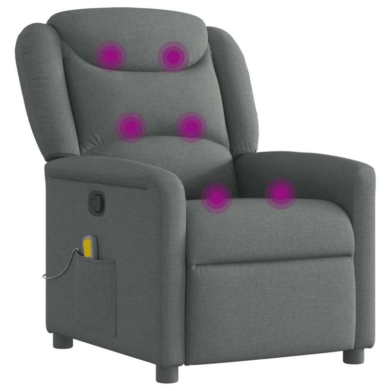 Облегнете се и се отпуснете в този изключително комфортен масажен наклоняем стол! Функция за ръчно накланяне: Този накланящ се стол има дръжка от дясната страна. Можете ръчно да настроите поставката за крака и облегалката до произволна позиция според вашето удобство с просто издърпване на дръжката. Тази функция позволява максимален наклон от 135 градуса. Освен това облегалката може бързо да се върне на първоначалното си място с лесно издърпване на дръжката.Функция за вибрация: Представените 6 масажни точки ви позволяват да изпитате по-целенасочен масаж. Освен това включеното ръчно управление ви позволява да избирате различни програми за масаж. Функцията за масаж се захранва от USB конектора, но сертифицираният 5V USB източник на захранване не е включен.Удобно седене: Дебело подплатената седалка, облегалката и широките подлакътници, покрити с текстил, осигуряват уютно и топло усещане, което ви кара да се чувствате като в прегръдка, докато седите. Тъканта се отличава със семпъл и изчистен вид и е дишаща и издръжлива.Удобен страничен джоб: Този фотьойл има страничен джоб за вашето дистанционно управление или за поддържане на вашите основни вещи леснодостъпни.Здрава и стабилна рамка: Рамката, изработена от дърво и метал, осигурява здрава структура и стабилност. Този накланящ се фотьойл е удобен и издръжлив. Този уред може да се използва от деца на възраст от 8 години и нагоре, както и от лица с намалени физически, сетивни или умствени способности или с липса на опит и познания, ако са получили надзор или инструкции относно използването на уреда по безопасен начин и разбират свързаните с него опасности. Децата не трябва да си играят с уреда. Децата не трябва да извършват почистване и поддръжка без надзор. Моля, обърнете внимание да използвате само сертифициран вход за постоянен ток 5V. По-високото напрежение може да доведе до прегряване и повреда на устройството и потенциален риск от пожар.