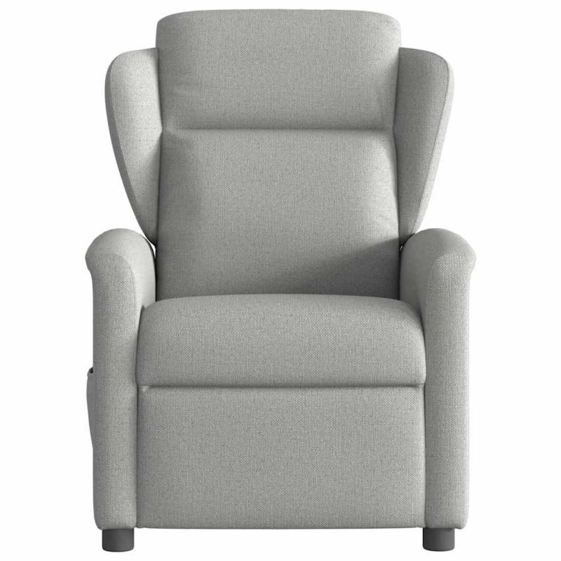 Облегнете се и се отпуснете в този изключително комфортен масажен наклоняем стол! Функция за ръчно накланяне: Този накланящ се стол има дръжка от дясната страна. Можете ръчно да настроите поставката за крака и облегалката до произволна позиция според вашето удобство с просто издърпване на дръжката. Тази функция позволява максимален наклон от 135 градуса. Освен това облегалката може бързо да се върне на първоначалното си място с лесно издърпване на дръжката.Функция за вибрация: Представените 6 масажни точки ви позволяват да изпитате по-целенасочен масаж. Освен това включеното ръчно управление ви позволява да избирате различни програми за масаж. Функцията за масаж се захранва от USB конектора, но сертифицираният 5V USB източник на захранване не е включен.Удобно седене: Дебело подплатената седалка, облегалката и широките подлакътници, покрити с текстил, осигуряват уютно и топло усещане, което ви кара да се чувствате като в прегръдка, докато седите. Тъканта се отличава със семпъл и изчистен вид и е дишаща и издръжлива.Удобен страничен джоб: Този фотьойл има страничен джоб за вашето дистанционно управление или за поддържане на вашите основни вещи леснодостъпни.Здрава и стабилна рамка: Рамката, изработена от дърво и метал, осигурява здрава структура и стабилност. Този накланящ се фотьойл е удобен и издръжлив.