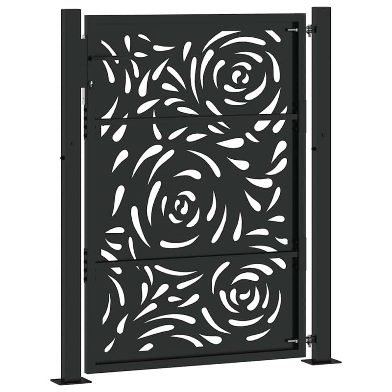 Градинска порта, черна, 100x125 см, стоманена, дизайн с пламък