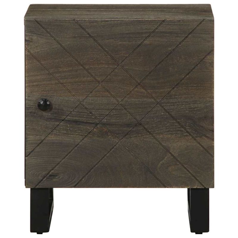 Внесете чаровен щрих в сегашния декор на стаята ви с това стилно нощно шкафче! Здрав и стабилен материал: Масивното мангово дърво, здрава тропическа твърда дървесина, е силно предпочитано за производството на мебели поради изключителната си издръжливост и здравина. Красивите ѝ дървесни шарки правят всяка мебел малко по-различна от следващите.Метални крака: Нощното шкафче е подпряно на здрави метални крака, които осигуряват стабилност, безопасност и устойчивост.Голямо пространство за съхранение: Нощното шкафче осигурява достатъчно място за съхранение на списания, книги, чаши и други неща, които са необходими за спане, като ги държи подредени и на една ръка разстояние.Здрава горна част: Стабилният плот на нощното шкафче е идеален за поставяне на настолни лампи, будилници, книги, рамки за снимки, малки саксийни растения, декорации или други неща от първа необходимост.Практична врата: Вратата на шкафа за легло осигурява затворено пространство за съхранение, за да бъдат вещите ви подредени, защитени и да не се виждат. Добре е да се знае:Всеки артикул е уникален с вариации в цветове и зърна. Доставката е на случаен принцип, което гарантира ексклузивността и индивидуалността на вашия продукт.