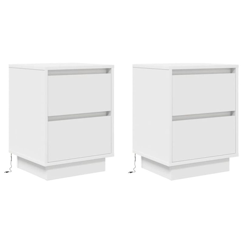 Нощни шкафчета с LED осветление 2 бр., бели 38x34x50 cm