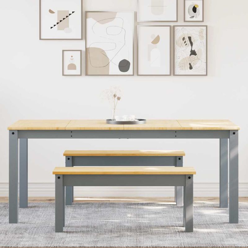 Създайте топло и привлекателно място за започване на деня или се насладете на чудесна вечеря заедно с този дървен комплект за хранене! Здрав и стабилен материал: Масивната борова дървесина е известна със своята здравина и издръжливост. Нейните прави зърна и отличителни възли допринасят за рустик чара ѝ.Здрав плот: Тази трапезна маса има здрав плот, който я прави идеална за сервиране на ястия, закуски, напитки и за излагане на любимите ви декорации.Голямо пространство за сядане: Благодарение на обширните пейки за сядане, този трапезен комплект е идеален за събиране на семейството и приятелите за възхитителна трапеза.Лесна поддръжка: Благодарение на гладката си повърхност, комплектът за трапезария се почиства лесно с влажна кърпа и изисква по-малко поддръжка.Широки приложения: Комплектът трапезни маси е с минималистичен дизайн, за да пасне на всяка среда в дома ви. Може да се използва в кухнята, трапезарията и др. Максимално 110 кг на седалка.