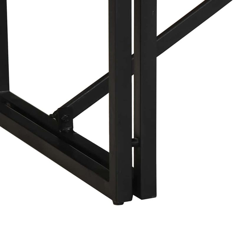 Отпуснете се и се насладете на почивката и забавленията със семейството и приятелите си около тази маса за кафе! Здрав и стабилен материал на рамката: Масивното акациево дърво е известно със своята здравина и издръжливост. Неговите разнообразни цветове и уникални зърнести шарки му придават привлекателен вид. С добра стабилност и устойчивост на атмосферни влияния, тя е идеална за изработка на вътрешни и външни мебели.Стабилна и дълготрайна рамка: Прахово боядисаната желязна рамка на масата подчертава интериора ви с индустриален стил и осигурява изключителна издръжливост, стабилност и устойчивост на корозия.Стабилен и здрав плот: Здравият плот е идеален за поставяне на вашите напитки или всякакви други нужди, които ви трябват подръка.Необработена повърхност: Тази странична маса е изработена от незавършена масивна дървесина, така че можете да я оставите в естествения ѝ вид или да я боядисате, за да съответства на вашия интериор. Добре е да се знае:Всеки артикул е уникален с вариации в цветове и зърна. Доставката е на случаен принцип, което гарантира ексклузивността и индивидуалността на вашия продукт.