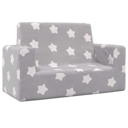2-местен детски диван, светлосив, на звезди, мек плюш