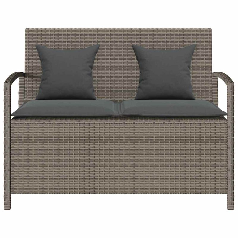 Градинска пейка за съхранение с възглавница Grey Poly Rattan