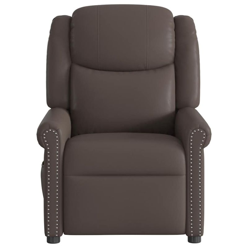 Облегнете се и се отпуснете в този изключително комфортен масажен наклоняем стол! Функция за ръчно накланяне: Този накланящ се стол има дръжка от дясната страна. Можете ръчно да настроите поставката за крака и облегалката до произволна позиция според вашето удобство с просто издърпване на дръжката. Тази функция позволява максимален наклон от 135 градуса. Освен това облегалката може бързо да се върне на първоначалното си място с лесно издърпване на дръжката.Функция за вибрация: Представените 6 масажни точки ви позволяват да изпитате по-целенасочен масаж. Освен това включеното ръчно управление ви позволява да избирате различни програми за масаж. Функцията за масаж се захранва от USB конектора, но сертифицираният 5V USB източник на захранване не е включен.Удобно седене: Дебело подплатената седалка, облегалката и широките подлакътници, покрити с изкуствена кожа, осигуряват уютно и топло усещане, което ви кара да се чувствате като в прегръдка, докато седите. Изкуствената кожа е много издръжлив материал. Устойчива е на петна, което я прави лесна за почистване с влажна кърпа. Гладката повърхност също така придава луксозен вид и красотата на естествената кожа.Удобен страничен джоб: Този фотьойл има страничен джоб за вашето дистанционно управление или за поддържане на вашите основни вещи леснодостъпни.Здрава и стабилна рамка: Рамката, изработена от дърво и метал, осигурява здрава структура и стабилност. Този накланящ се фотьойл е удобен и издръжлив. Този уред може да се използва от деца на възраст от 8 години и нагоре, както и от лица с намалени физически, сетивни или умствени способности или с липса на опит и познания, ако са получили надзор или инструкции относно използването на уреда по безопасен начин и разбират свързаните с него опасности. Децата не трябва да си играят с уреда. Децата не трябва да извършват почистване и поддръжка без надзор. Моля, обърнете внимание да използвате само сертифициран вход за постоянен ток 5V. По-високото напрежение може да доведе до прегряване и повреда на устройството и потенциален риск от пожар. GPSR