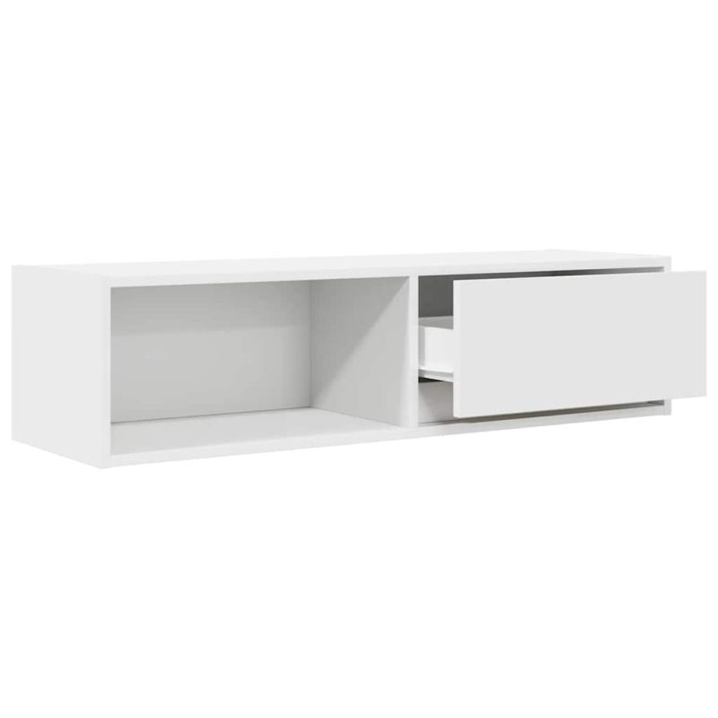 ТВ шкаф Бяло 100x31x25,5 см Инженерна дървесина