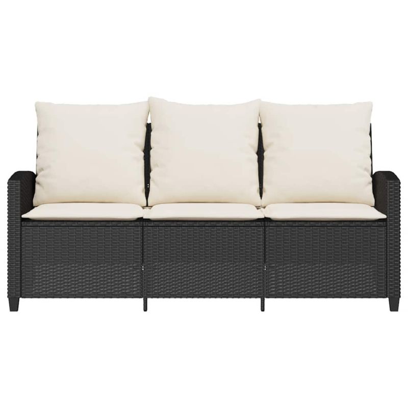 Градински диван с 3 седалки и възглавници&Маса черен полиратан
