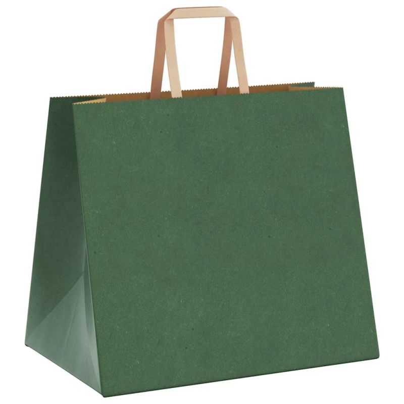 Хартиени торбички 250 бр с дръжки зелени 32x22x28 см