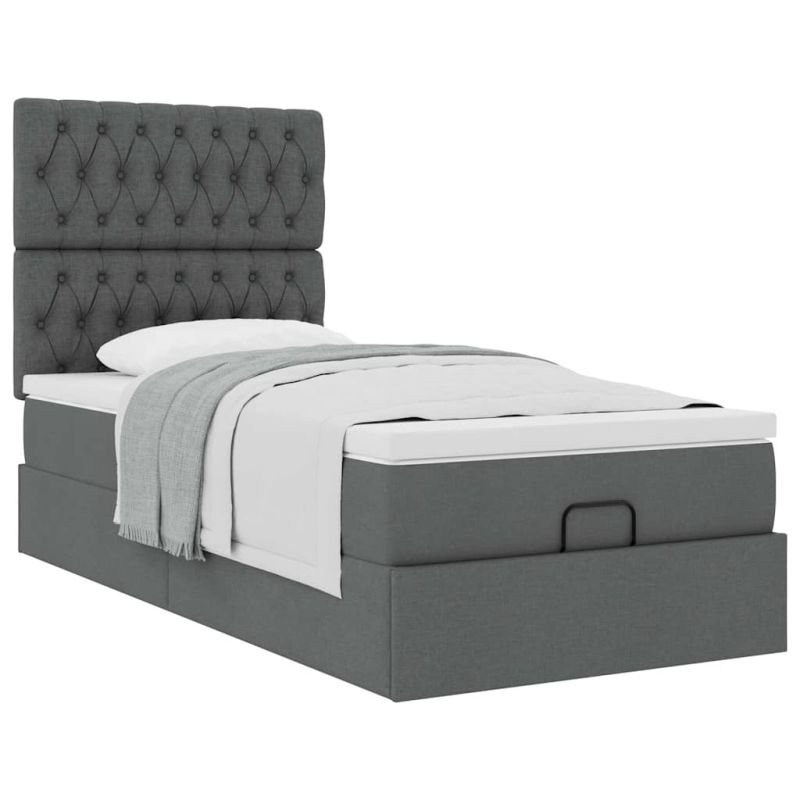 Османска легло с матрак, тъмносиво, 90x200 см, плат