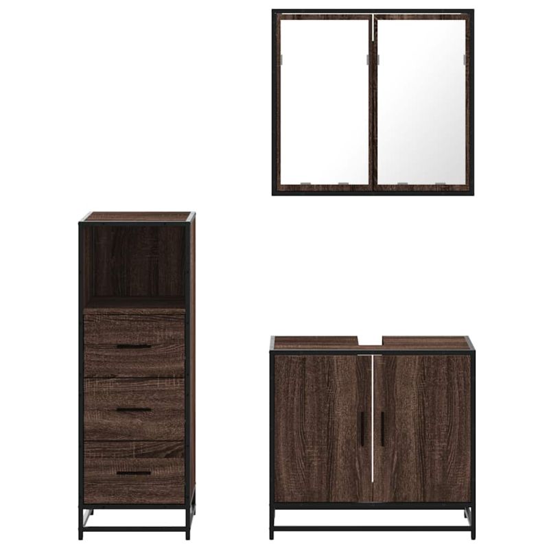 Комплект мебели за баня от 3 части, кафяв дъб, инженерно дърво