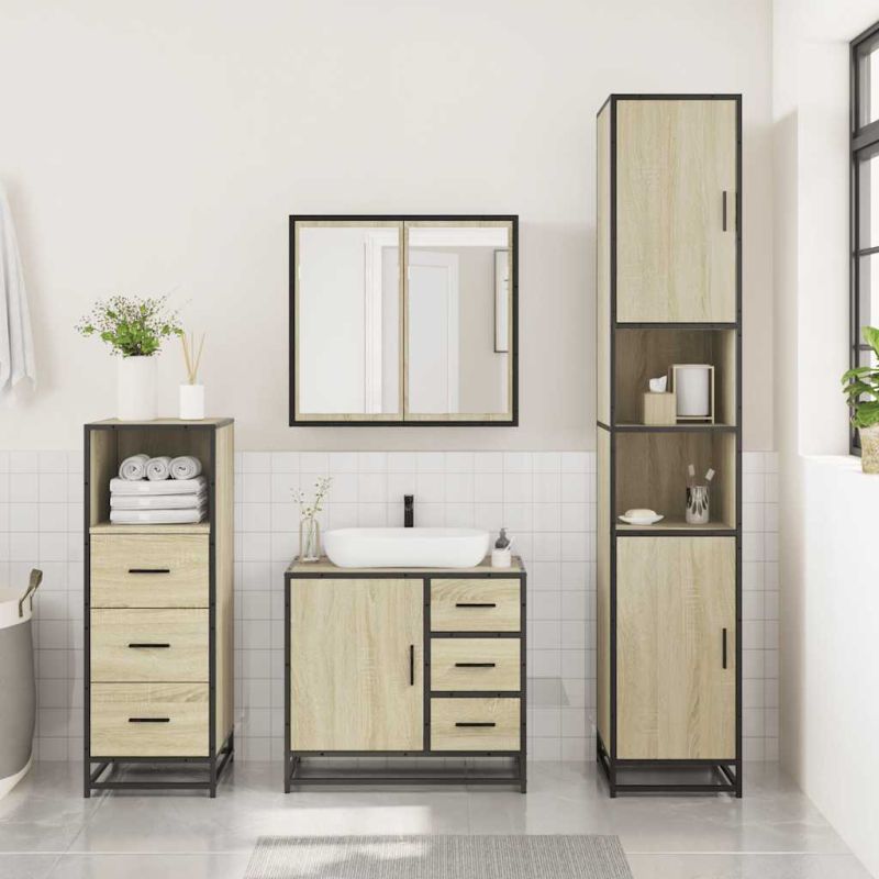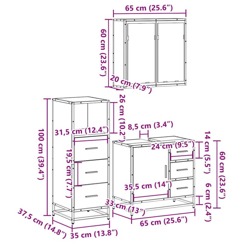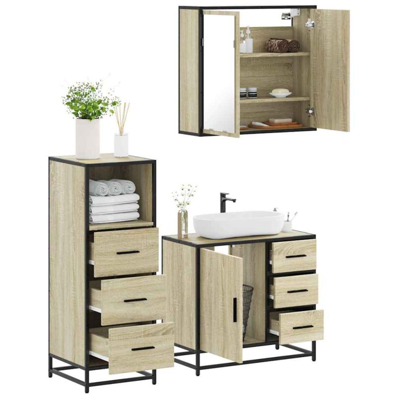 Комплект шкафове за баня от 3 части дъб сонома инженерно дърво