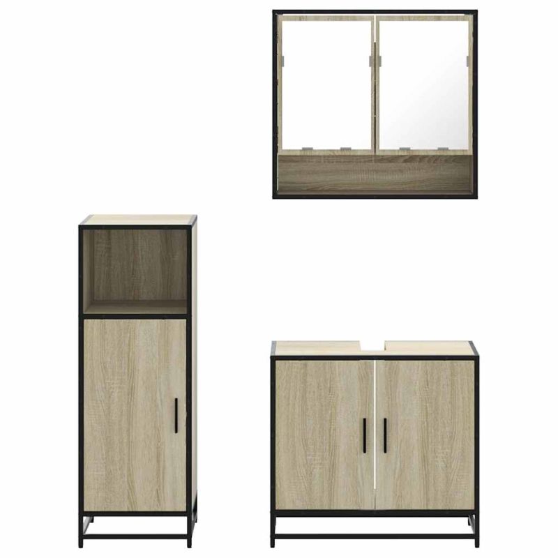 Комплект шкафове за баня от 3 части дъб сонома инженерно дърво