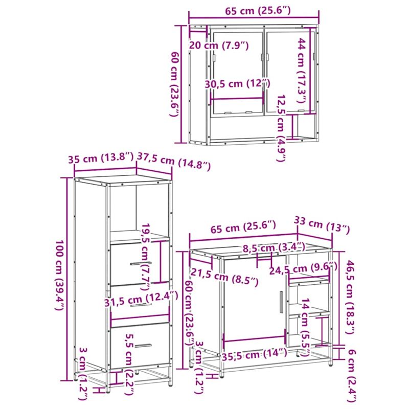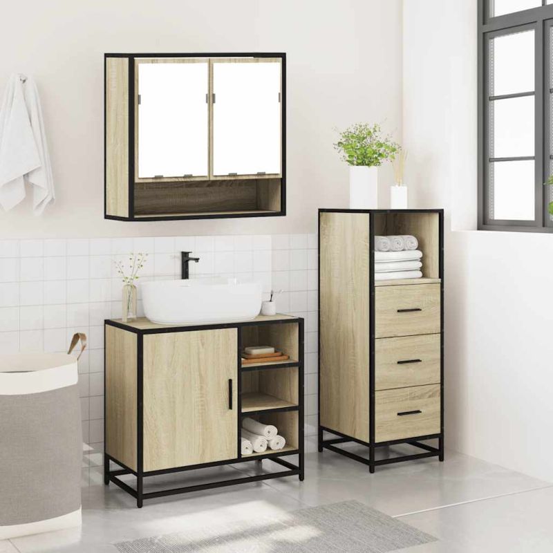 Комплект шкафове за баня от 3 части дъб сонома инженерно дърво