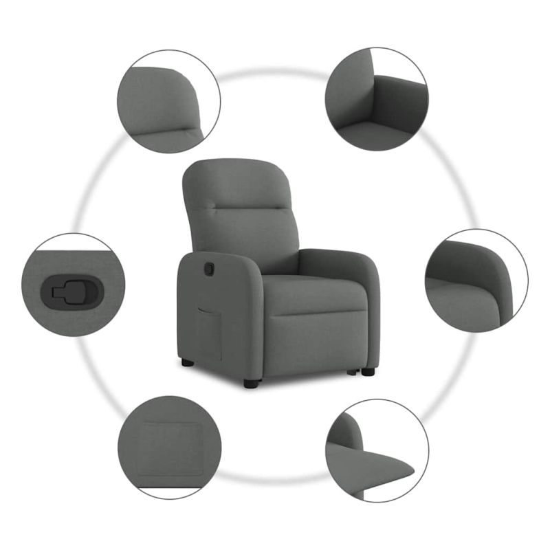 Изправящ реклайнер стол, тъмносив, текстил