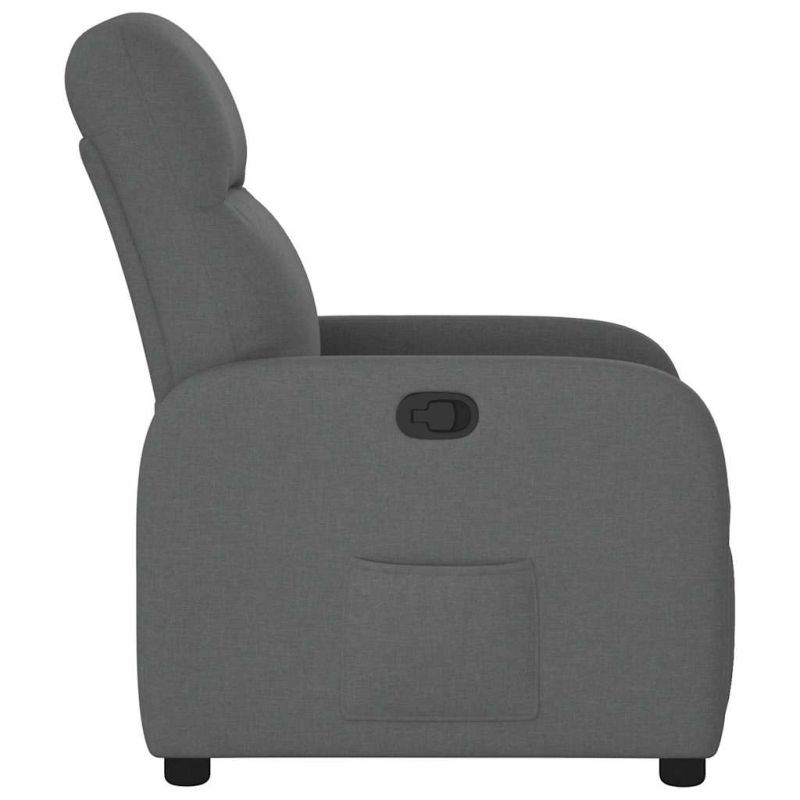 Облегнете се и се отпуснете в този изключително комфортен наклоняем стол! Функция за ръчно накланяне: Този накланящ се стол има дръжка от дясната страна. Можете ръчно да настроите поставката за крака и облегалката до произволна позиция според вашето удобство с просто издърпване на дръжката. Тази функция позволява максимален наклон от 135 градуса. Освен това облегалката може бързо да се върне на първоначалното си място с лесно издърпване на дръжката.Удобно седене: Дебело подплатената седалка, облегалката и широките подлакътници, покрити с текстил, осигуряват уютно и топло усещане, което ви кара да се чувствате като в прегръдка, докато седите. Тъканта се отличава със семпъл и изчистен вид и е дишаща и издръжлива.Удобен страничен джоб: Този фотьойл има страничен джоб, за да държите основните си вещи леснодостъпни.Здрава и стабилна рамка: Рамката, изработена от дърво и метал, осигурява здрава структура и стабилност. Този накланящ се фотьойл е удобен и издръжлив.