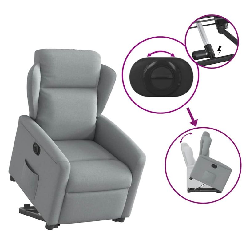 Електрически изправящ реклайнер стол, светлосив, текстил