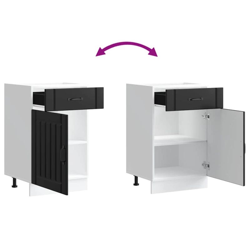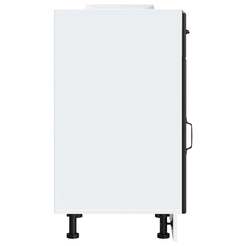 Този кухненски шкаф оптимизира пространството в кухнята ви, като осигурява достатъчно място за съхранение на личните ви вещи! Стабилен и издръжлив материал: Инженерната дървесина е издръжлив и стабилен материал с гладка повърхност, която е устойчива на влага, изкривяване и разцепване, което я прави надежден избор за различни проекти.Голямо пространство за съхранение: Шкафът за мивка предлага достатъчно място за съхранение на чинии, чинии, тенджери и други кухненски уреди.Практични врати: Вратата помага за поддържането на чисто и организирано пространство, като скрива кухненските уреди и разхвърляните вещи зад тях.Регулируеми крачета: Крачетата на този шкаф могат да се регулират по височина, за да отговарят на разположението на кухнята ви.Лесна поддръжка: Благодарение на гладката си повърхност този кухненски шкаф се почиства лесно с влажна кърпа и изисква по-малко поддръжка. Внимание:За да предотвратите преобръщане, този продукт трябва да се използва с предоставеното устройство за закрепване на стена. Добре е да се знае:Винт(ове) и щепсел(и) за вътрешността на стената не са включени. Търсете и използвайте винт(ове) и дюбел(и), подходящи за вашите стени. Ако не сте сигурни, потърсете професионална помощ. Прочетете и следвайте внимателно всяка стъпка от инструкциите.