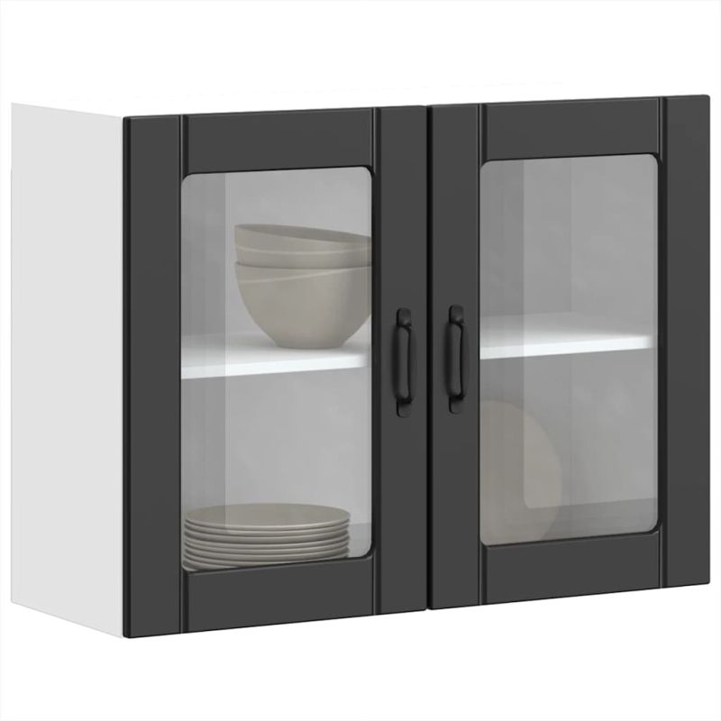 Начало Дом и градина Мебели Шкафове и решения за съхранение Кухненски шкафове Кухненски стенен шкаф със стъклена врата Lucca черен