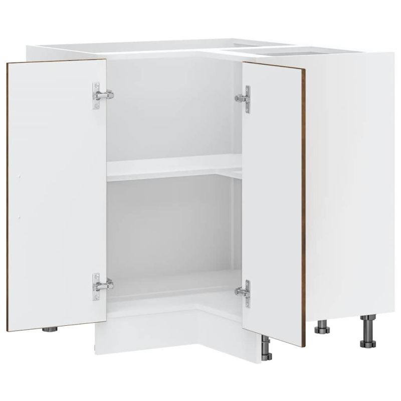 Този кухненски ъглов шкаф оптимизира кухненското пространство, като осигурява достатъчно място за съхранение на личните ви вещи! Стабилен и издръжлив материал: Инженерната дървесина е издръжлив и стабилен материал с гладка повърхност, която е устойчива на влага, изкривяване и разцепване, което я прави надежден избор за различни проекти.Голямо пространство за съхранение: Ъгловият кухненски шкаф предлага достатъчно място за съхранение на купи, чинии, тенджери и други кухненски уреди.Практични врати: Вратата помага за поддържането на чисто и организирано пространство, като скрива кухненските уреди и разхвърляните вещи зад тях.Регулируеми крачета: Крачетата на този шкаф могат да се регулират по височина, за да отговарят на разположението на кухнята ви.Лесна поддръжка: Благодарение на гладката си повърхност този кухненски ъглов шкаф се почиства лесно с влажна кърпа и изисква по-малко поддръжка. Внимание:За да предотвратите преобръщане, този продукт трябва да се използва с предоставеното устройство за закрепване на стена. Добре е да се знае:Винт(ове) и щепсел(и) за вътрешността на стената не са включени. Търсете и използвайте винт(ове) и дюбел(и), подходящи за вашите стени. Ако не сте сигурни, потърсете професионална помощ. Прочетете и следвайте внимателно всяка стъпка от инструкциите.